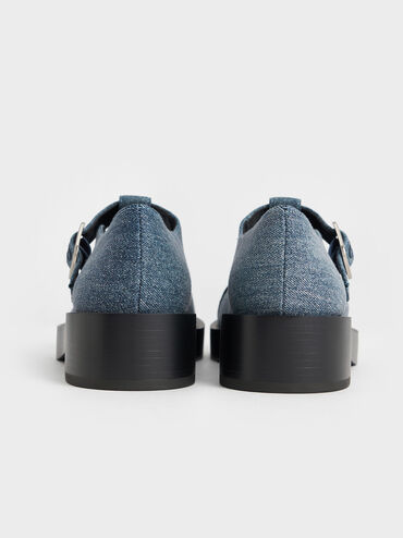 Sepatu Mary Janes T-Bar Cut-Out Denim - Denim Blue