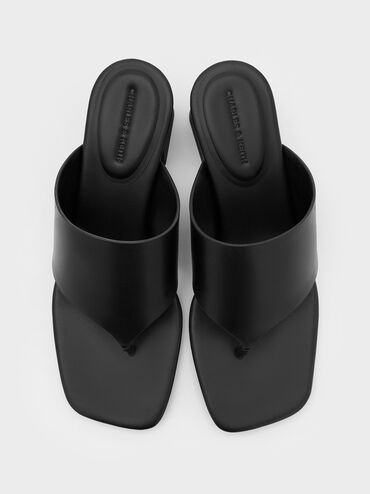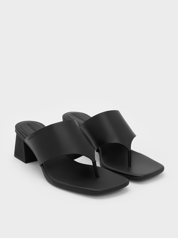 An elevated version of the popular thong sandal, this pair is relaxed and polished at the same time. Featuring a sleek, minimalist design, these easy-wearing slip-on shoes in versatile black can be dressed up or down, depending on your mood and the occasion. Sitting on sturdy block heels, they will give your frame a flattering boost while still being comfortable enough for all-day wear.
