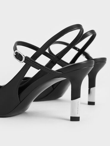 In timeless black, these slingback pumps are as classic as they come. Their minimalist design offers versatility, allowing you to wear them with anything as they will perfectly complement every look. A small detail sets them apart: they feature two-tone heels with a black-and-silver design that a touch of visual interest.
