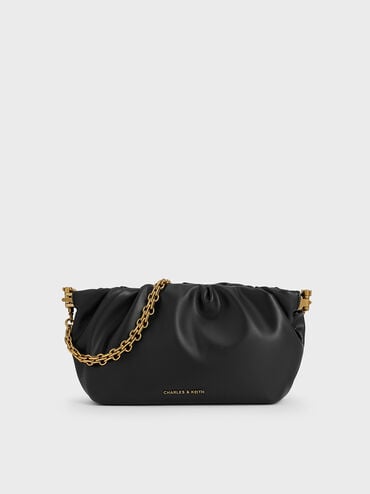A classic evening bag is a staple in every wardrobe, and the Brigette offers a sophisticated take on that. The elongated silhouette is softened by ruched folds that give it a slouchy appeal. Affixed with a frame closure, you will be able to access your essentials with ease. The versatility of the bag extends beyond its black finish -- it can be carried on the shoulder with the chain strap, slung across the body with the adjustable one, or carried on its own as a clutch.