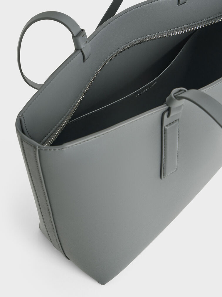 Buckle-Strap Slouchy Tote Bag, Grey, hi-res