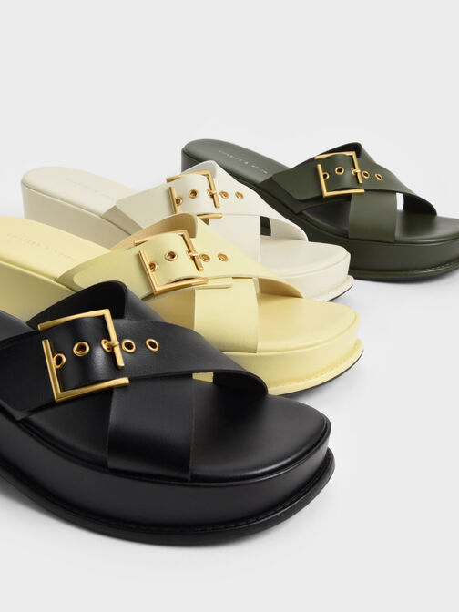 Crossover-Strap Square-Toe Block-Heel Mules, Black, hi-res
