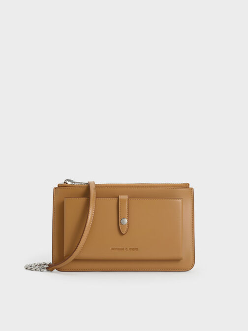 Organise your prized possessions with our nifty wallets in unexpected silhouettes and chunky chain straps.