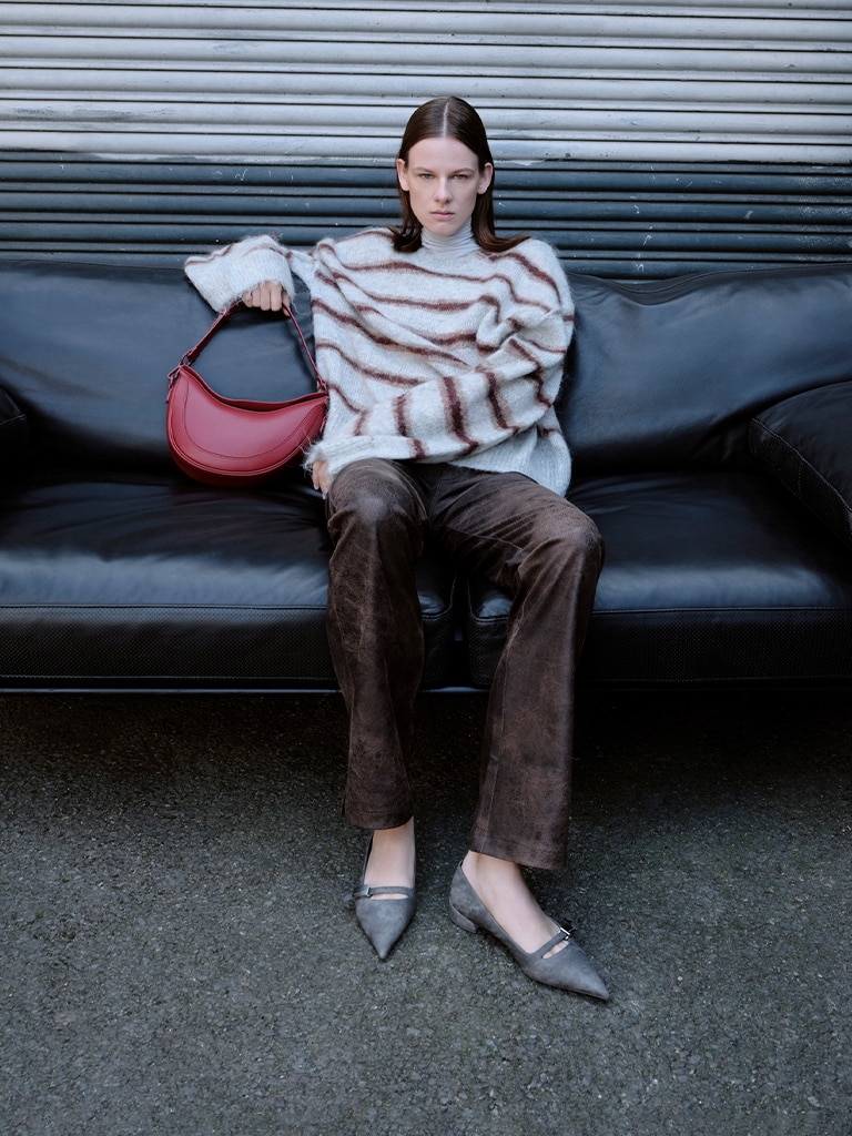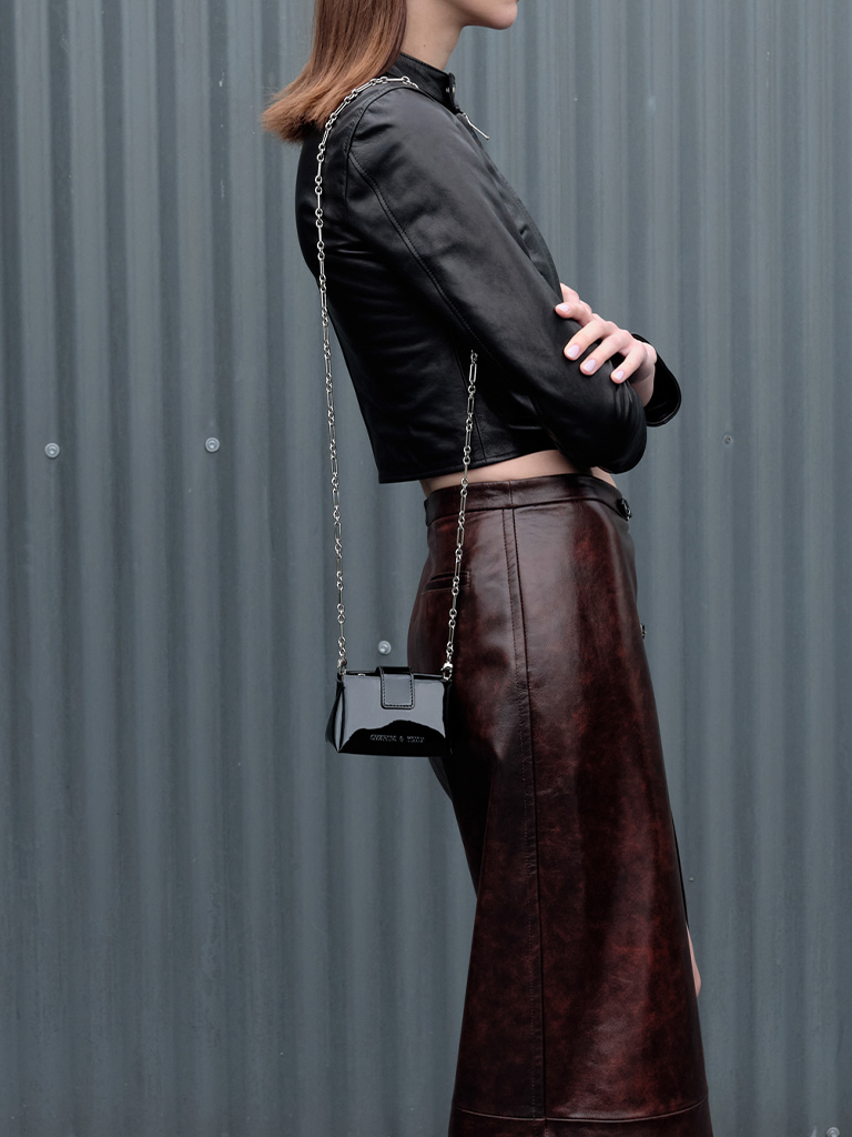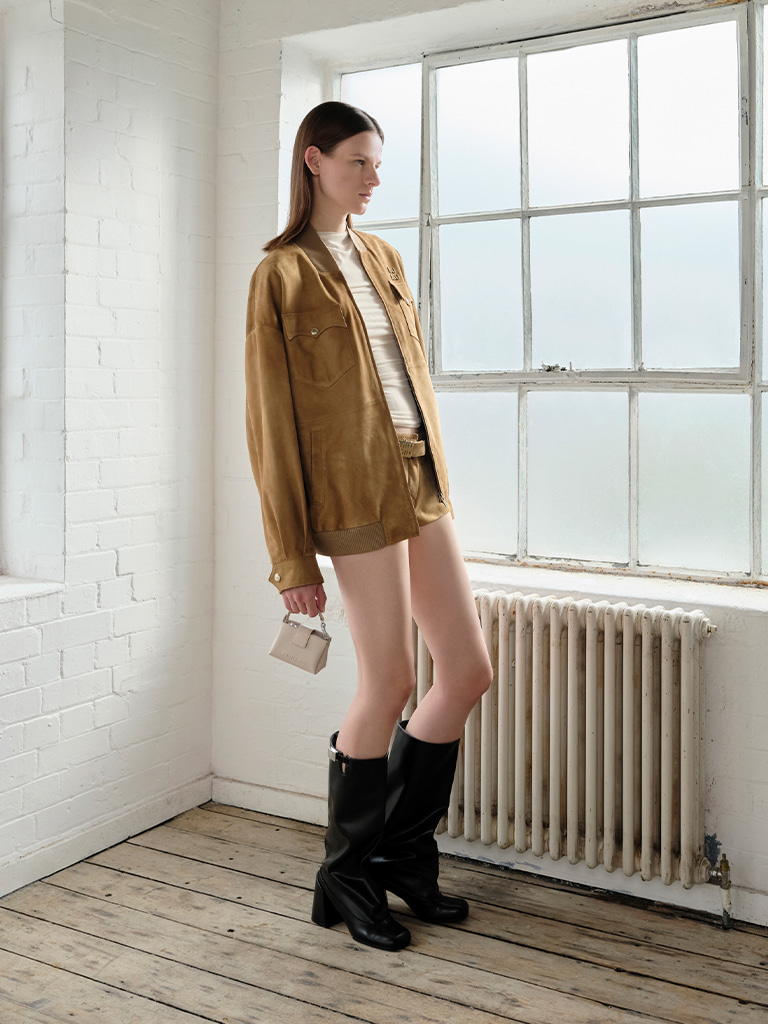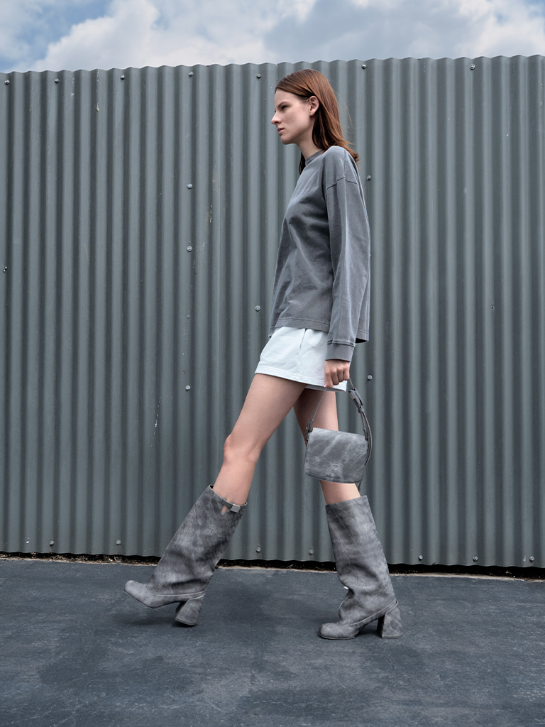 Meet the stars of our latest seasonal collection. The Charlot bag looks more elegant than ever in an elongated silhouette — there is also a street-chic patchwork-denim version. The Robbie range of shoes makes its debut with standout classic-with-a-twist designs like the ankle-strap chunky Mary Janes boots, platform knee-high boots and pointed-toe ballet flats. Dark-grey denim takes the place of black leather in this biker-girl-inspired collection. With denim accessories continuing to trend into the colder months, this cool and sturdy material will keep you ahead of the fashion curve.