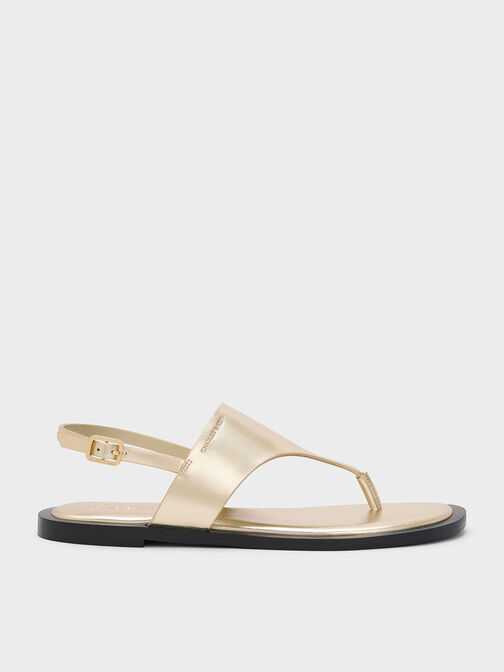 Metallic Strappy Thong Sandals, Gold, hi-res