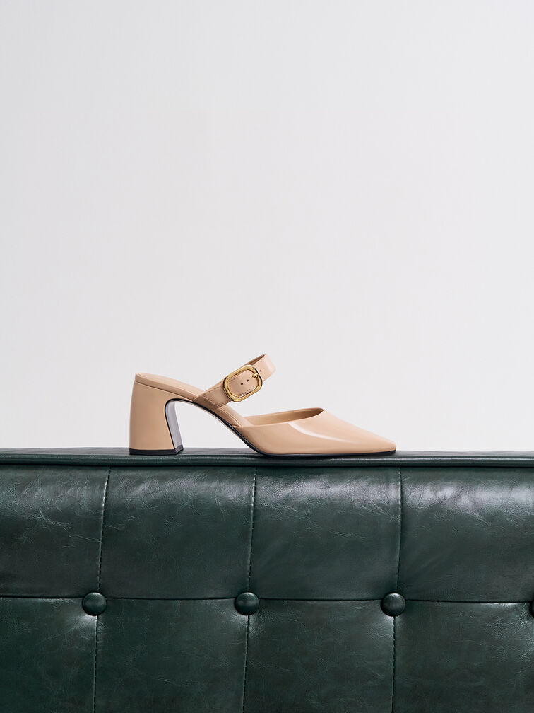 Patent Stiletto-Heel Ankle-Strap Sandals - nude