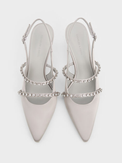 Jannie Recycled Polyester Crystal-Buckle Slingback Pumps, Light Grey, hi-res