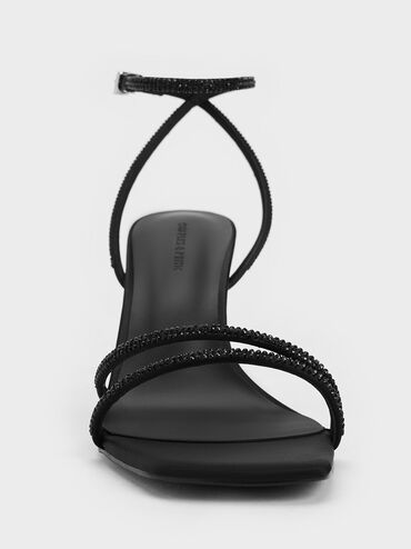 Sandal Stiletto-Heel Crystal-Embellished Satin - Black Textured
