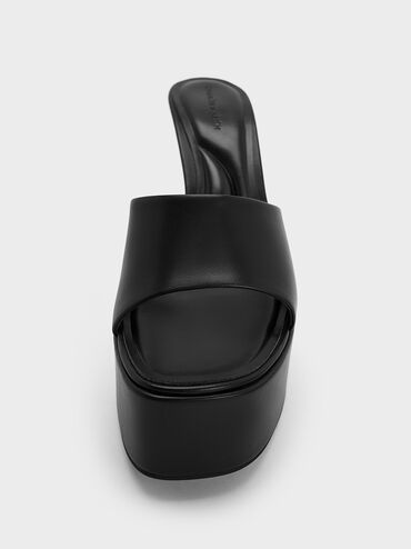 Bertumpu pada platform sole tebal dan flared heels yang tinggi, mules hitam ini pasti akan membuat Anda tampil menonjol di keramaian. Terbuat dari faux leather yang halus, sepatu slip-on yang membuat statement ini dapat dipadukan ke atas atau ke bawah dengan mudah. Pakai dengan maxi dress atau jeans, keduanya akan terlihat sama sempurnanya.