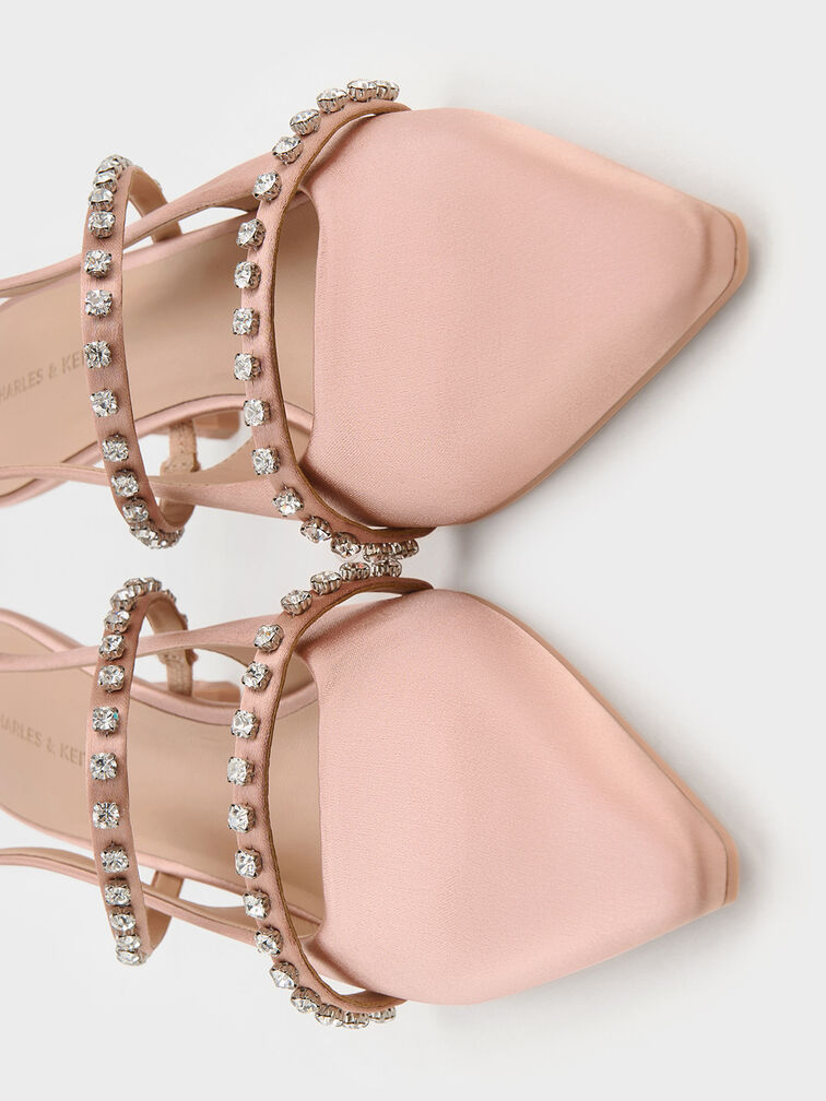Sepatu Slingback Pumps Mary Jane Crystal-Embelisshed Satin - Nude