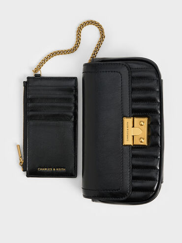 Kapan pun Anda membutuhkan tas kecil yang elegan, mini Donna adalah pilihan tepat. Menampilkan quilting vertikal dan tekstur crinkle-effect, sentuhan hitam klasik memiliki karakter yang distinctive. Hardware dengan tone emas semakin menunjang gayanya, menambahkan sentuhan polish tambahan. Disertai card holder yang bisa dilepas dengan finishing sama, Anda bisa menyimpan kartu dan barang berharga dengan rapi di dalamnya -- sempurna untuk makan siang atau malam keluar.