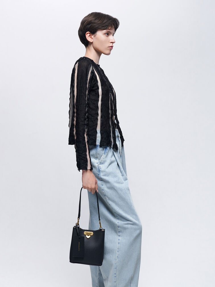 Black-Textured Recycled Polyester Crystal-Embellished Ankle-Strap Sandals - CHARLES & KEITH