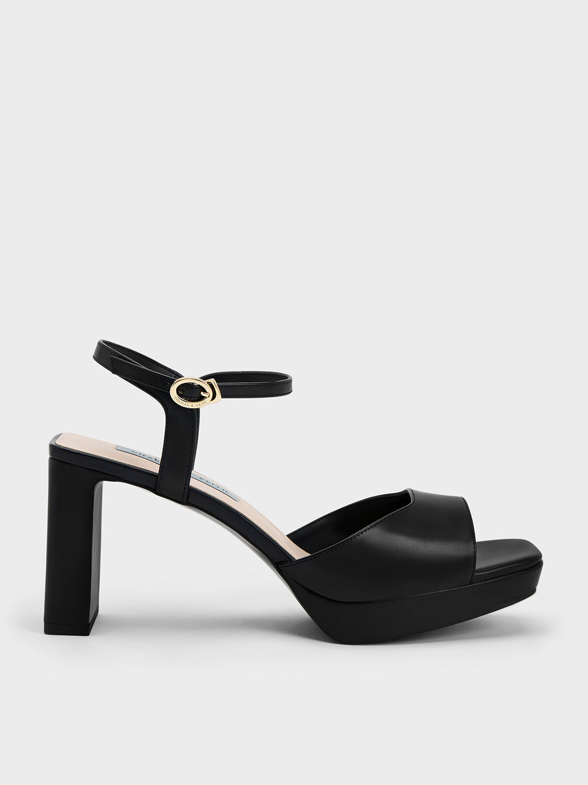 Black-Textured Recycled Polyester Crystal-Embellished Ankle-Strap Sandals - CHARLES & KEITH