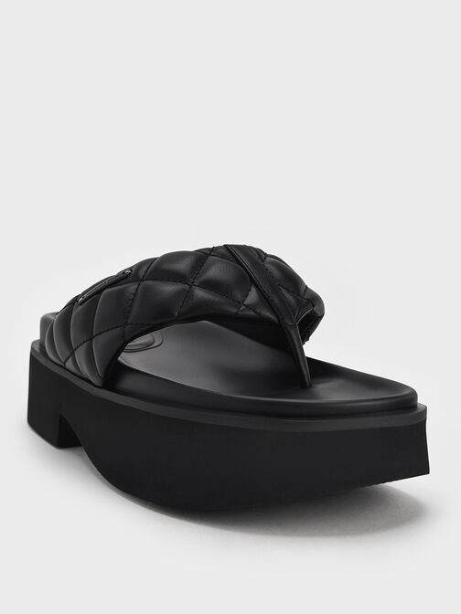 Black-Textured Recycled Polyester Crystal-Embellished Ankle-Strap Sandals - CHARLES & KEITH